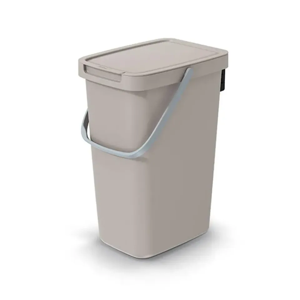 Sorteer of GFT afval scheiden prullenbak of afval emmer voor in de keuken of op het aanrecht. Voorzien van afsluitbare deksel en hengsel. Ruim compartiment van 12 Liter. Kleur: beige. Afmetingen: 20 x 26 x 37 cm.