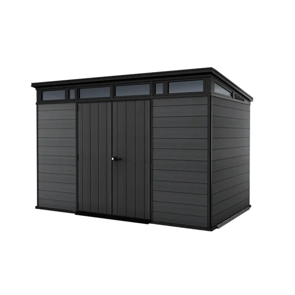 •De dubbellaagse wanden zijn gemaakt van Evotech, ons innovatieve composietmateriaal dat u de esthetische uitstraling en het gevoel van hout geeft, maar met de voordelen van kunststof met staal verstevigd tegeldak