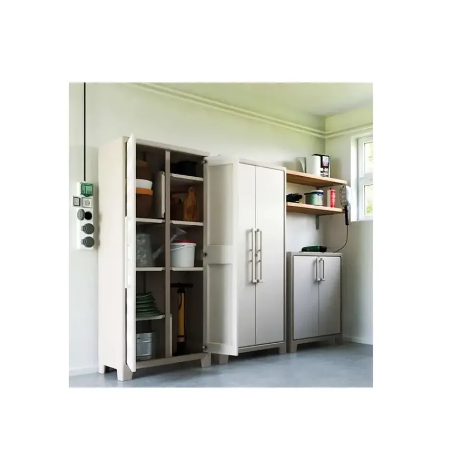 De Gulliver multispace kast is dè kast die ruimtes met z’n innovatieve kleuren en design inricht. De kast is echt omvangrijk, stevig en volledig spatwaterdicht. Het is de ideale kast voor binnengebruik en gebruik op een terras. De kast is in te delen in een horizontaal en verticaal deel. Hierdoor kunt u makkelijk uw bezems, harken en ander groot materiaal kwijt.