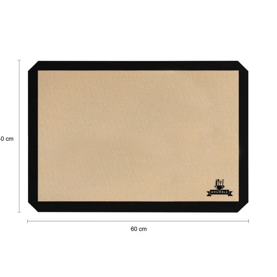 De siliconen bakmat van Krumble is bestand tegen hoge temperaturen tot minimaal 250 graden Celsius, waardoor je ‘m veilig kunt gebruiken voor allerlei ovenrecepten. Let op: de mat is niet geschikt om op te snijden met een mes. Gebruik de mat voor voorbereiding, bakken en bescherming, maar snijd je ingrediënten altijd op een snijplank.