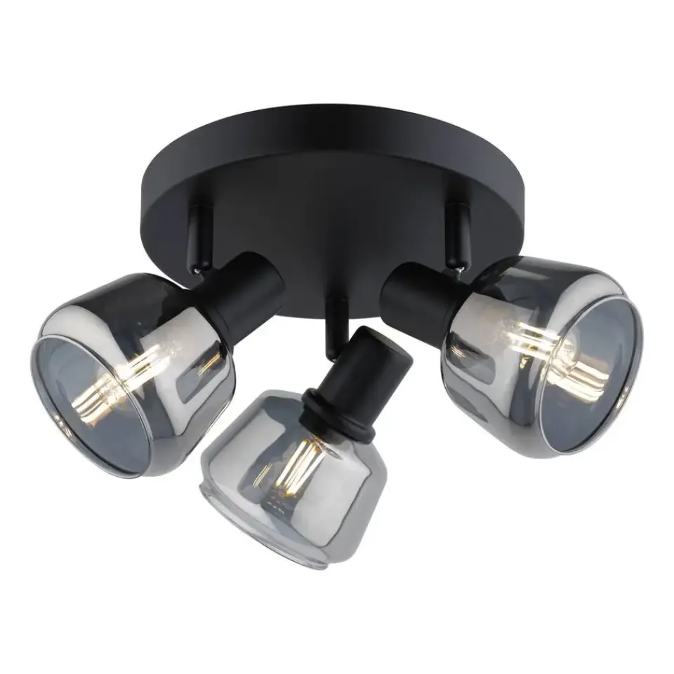 Driedubbele spot Noah heeft een moderne uitstraling en is geschikt voor de hal, keuken, slaapkamer, studeerkamer en woonkamer. Je kunt er dus overal mee terecht. De 3 spots hebben een E14 fitting. Houd daar goed rekening mee, want de lichtbronnen zijn niet inbegrepen. Het materiaal geeft de lamp een stijlvolle look. De spotjes zijn gemaakt van metaal en glas. Het glas heeft een smoked finish waardoor er een prachtig donkere tint in zit.