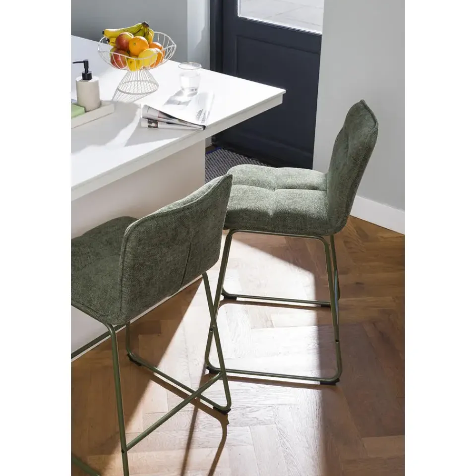 Met barkruk Stella haal je helemaal de trend van nu in huis! De kruk bestaat uit zowel een groenkleurige zitting als groenkleurige, stalen frame. Stella is een prachtige toevoeging aan je interieur. Door de gebolde zit- en rugkussens zit je heerlijk comfortabel. Met zijn opvallende ontwerp is barkruk Stella een echte eyecatcher!