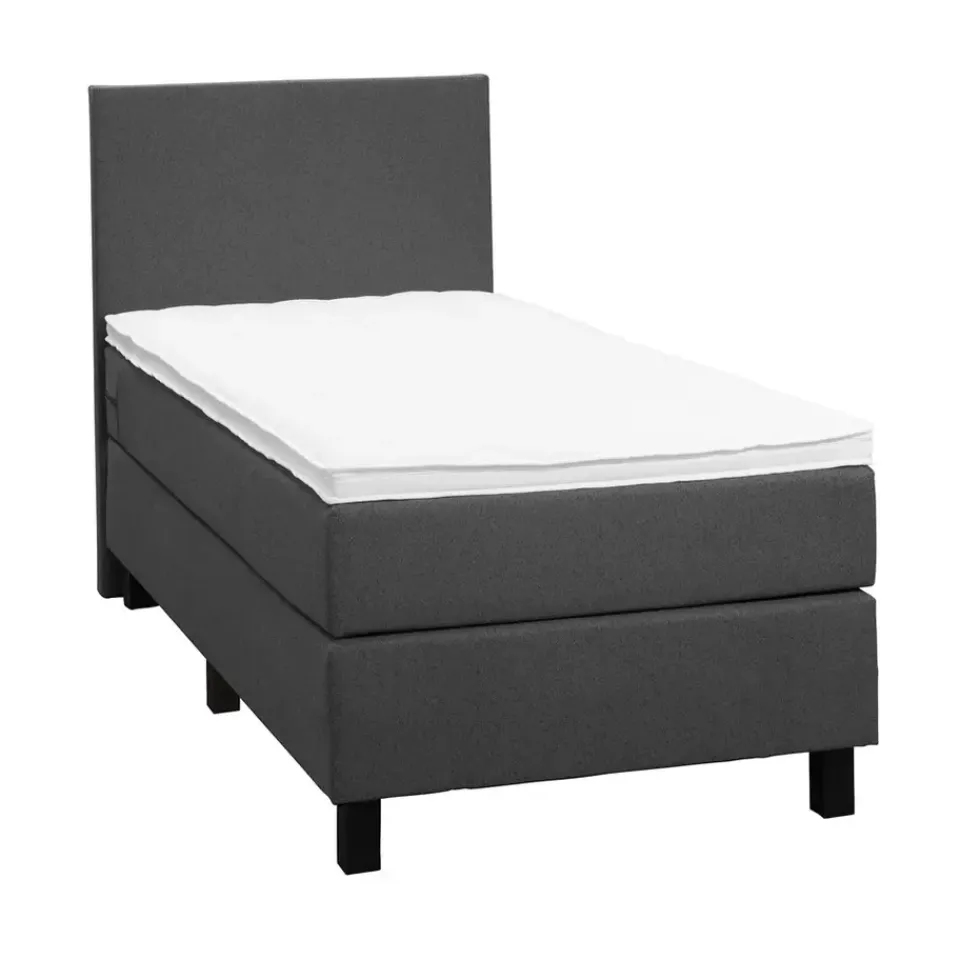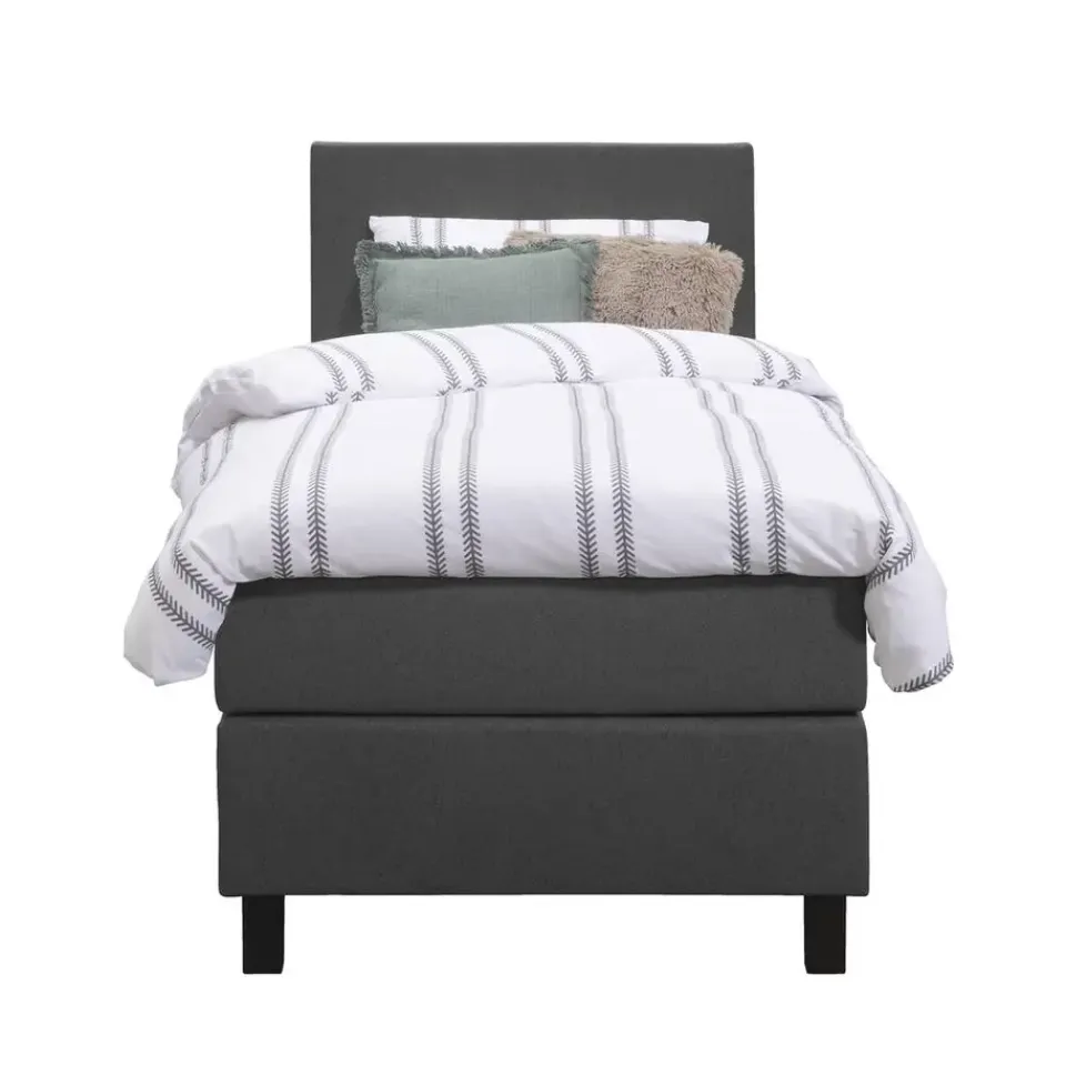 Boxspring Liv is een boxspring met een afmeting van 90×200 cm. Deze prachtige boxspring is bekleed met een grof geweven antraciete stof en heeft een strakke uitstraling met een egaal hoofdbord. De Liv egaal is uitgerust met een pocketveringmatras en daarnaast ook nog een koudschuim topdekmatras voor extra comfort. Het pocketveringmatras is omkeerbaar, bestaande uit zowel een medium- als een stevige kant. Hierdoor kun je zelf kiezen wat voor jou het meest comfortabel ligt.