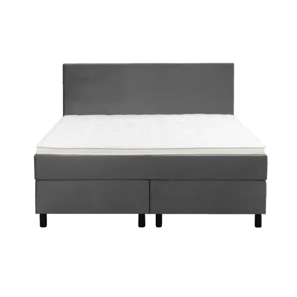 Boxspring Liv is een boxspring met een afmeting van 140×200 cm. Deze prachtige boxspring is bekleed met een velvet grijze stof en heeft een strakke uitstraling met een egaal hoofdbord. De Liv egaal is uitgerust met een pocketveringmatras en daarnaast ook nog een koudschuim topdekmatras voor extra comfort. Het pocketveringmatras is omkeerbaar, bestaande uit zowel een medium- als een stevige kant. Hierdoor kun je zelf kiezen wat voor jou het meest comfortabel ligt.