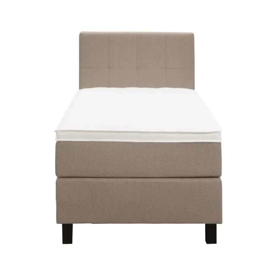 Boxspring Liv is een boxspring met een afmeting van 90×200 cm. Deze prachtige boxspring is bekleed met een grof geweven beige stof en heeft een landelijke uitstraling met een geblokt hoofdbord. De Liv geblokt is uitgerust met een pocketveringmatras en daarnaast ook nog een koudschuim topdekmatras voor extra comfort. Het pocketveringmatras is omkeerbaar, bestaande uit zowel een medium- als een stevige kant. Hierdoor kun je zelf kiezen wat voor jou het meest comfortabel ligt.