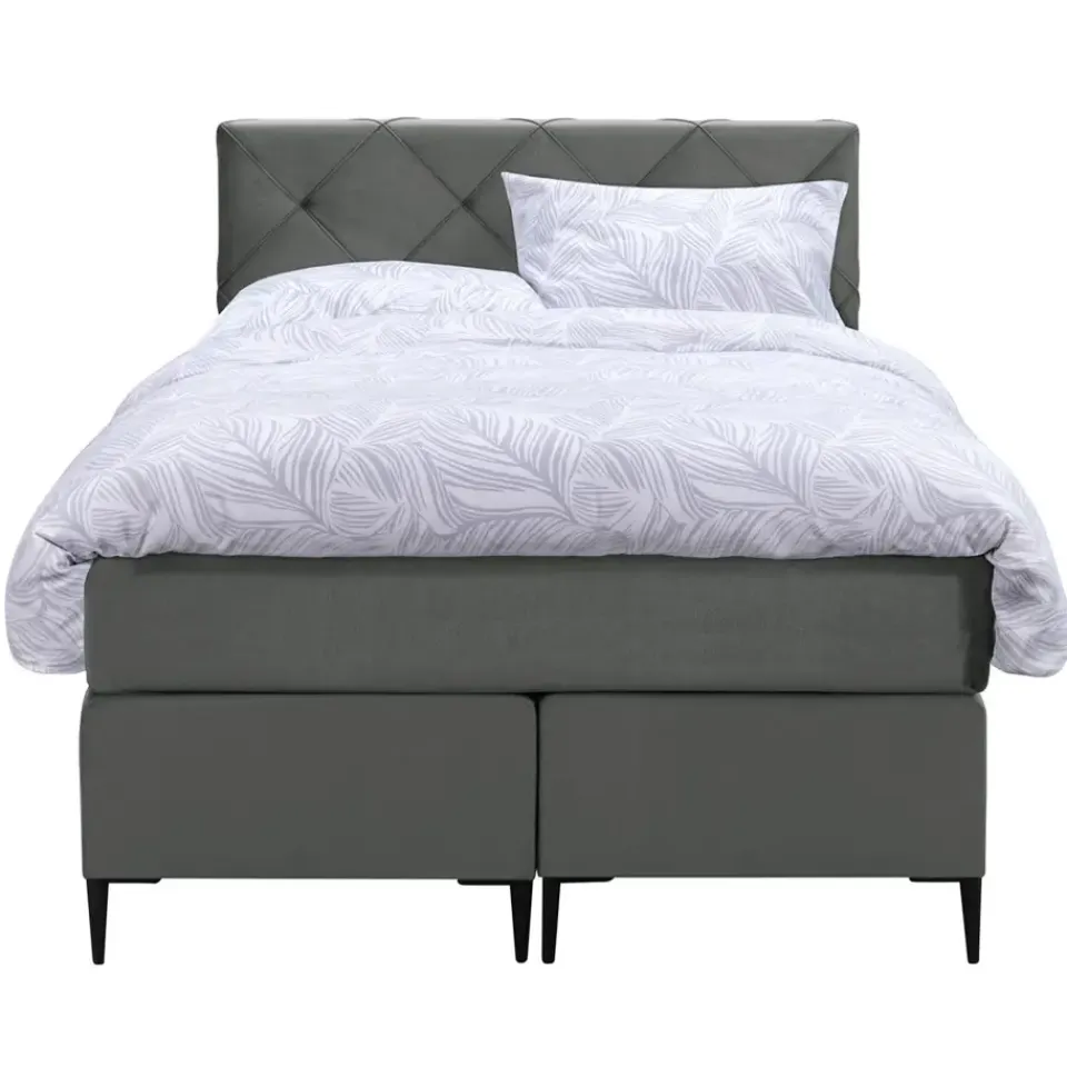 Boxspring Liv is een boxspring met een afmeting van 120×200 cm. Deze prachtige boxspring is bekleed met een velvet grijze stof en heeft een romantische uitstraling met een geruit hoofdbord. De Liv geruit is uitgerust met een pocketveringmatras en daarnaast ook nog een koudschuim topdekmatras voor extra comfort. Het pocketveringmatras is omkeerbaar, bestaande uit zowel een medium- als een stevige kant. Hierdoor kun je zelf kiezen wat voor jou het meest comfortabel ligt.