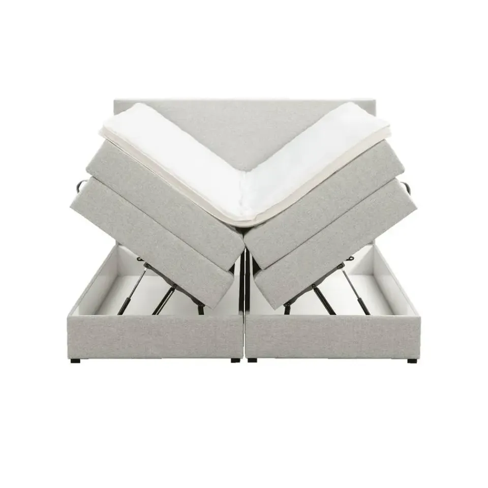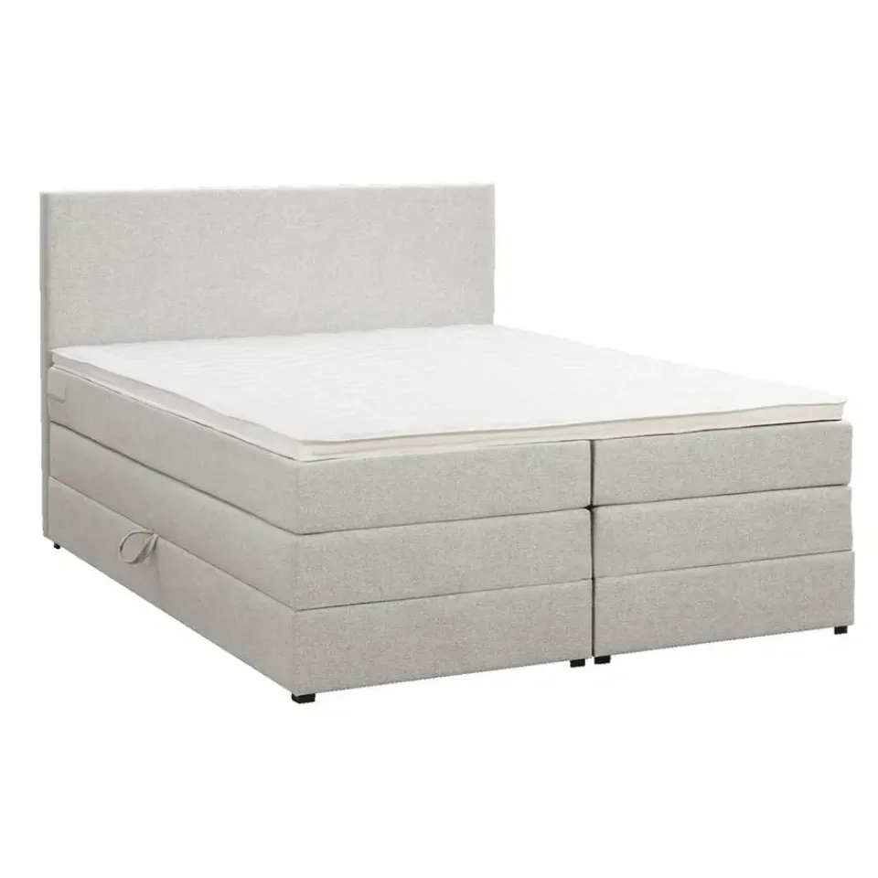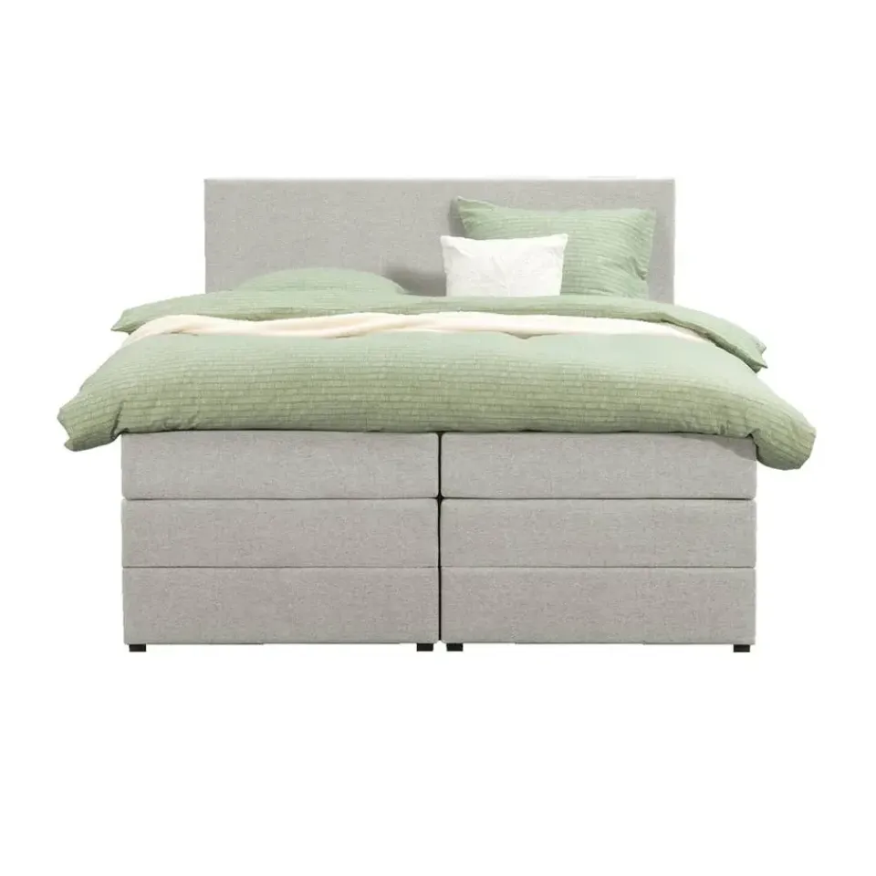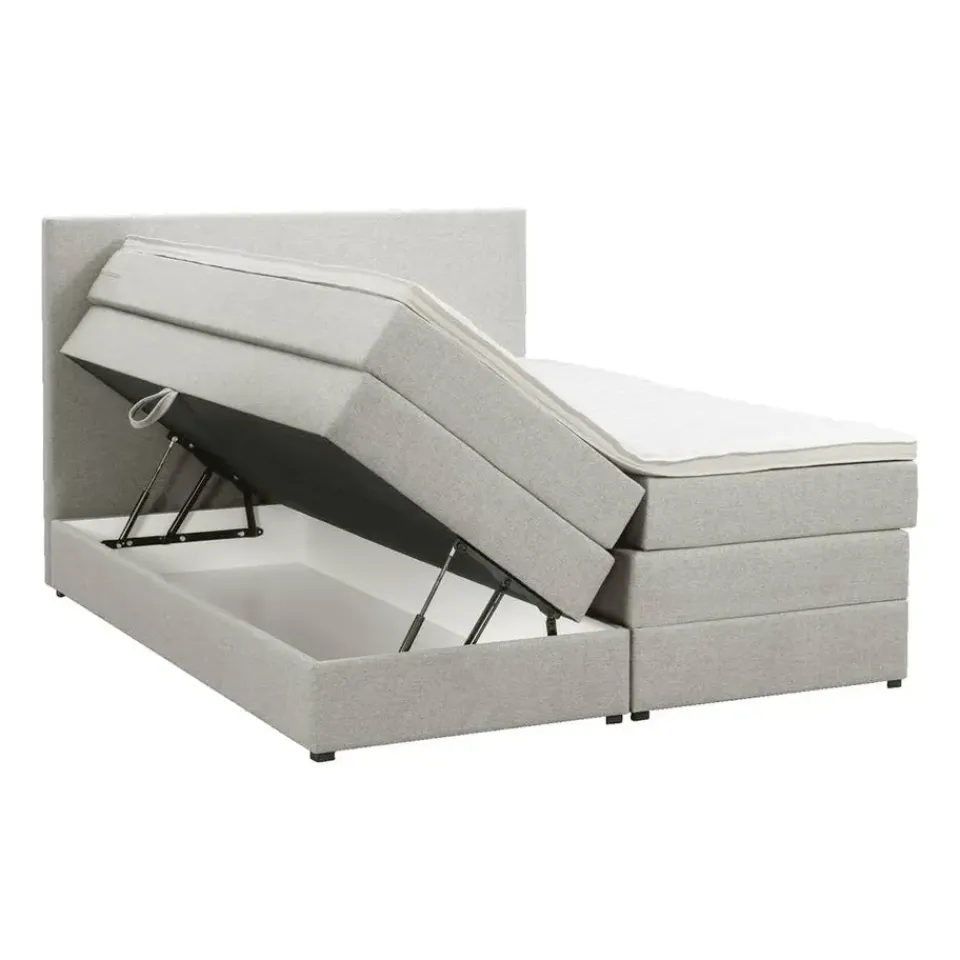 Boxspring met opbergruimte Liv is een boxspring met een afmeting van 140×200 cm. Deze prachtige boxspring is bekleed met een fijn geweven ecru stof en heeft een strakke uitstraling met een egaal hoofdbord. De Liv egaal is uitgerust met een pocketveringmatras en daarnaast ook nog een koudschuim topdekmatras voor extra comfort. Het pocketveringmatras is omkeerbaar, bestaande uit zowel een medium- als een stevige kant. Hierdoor kun je zelf kiezen wat voor jou het meest comfortabel ligt.