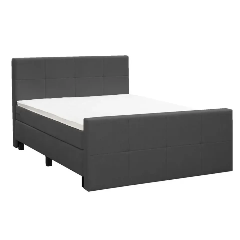Boxspring Liv is een boxspring met een afmeting van 180×200 cm. Deze prachtige boxspring is bekleed met een grof geweven antraciete stof en heeft een landelijke uitstraling met een geblokt hoofd- en voetbord. De Liv geblokt is uitgerust met twee pocketveringmatrassen en daarnaast ook nog een koudschuim topdekmatras voor extra comfort. Het pocketveringmatras is omkeerbaar, bestaande uit zowel een medium- als een stevige kant. Hierdoor kun je zelf kiezen wat voor jou het meest comfortabel ligt.