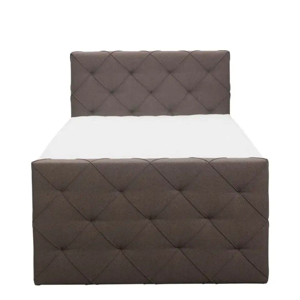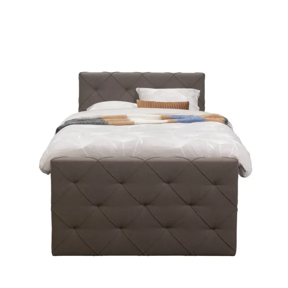 Boxspring Liv is een boxspring met een afmeting van 120×200 cm. Deze prachtige boxspring is bekleed met een grof geweven donkerbruine stof en heeft een romantische uitstraling met een geruit hoofd- en voetbord. De Liv geruit is uitgerust met een pocketveringmatras en daarnaast ook nog een koudschuim topdekmatras voor extra comfort. Het pocketveringmatras is omkeerbaar, bestaande uit zowel een medium- als een stevige kant. Hierdoor kun je zelf kiezen wat voor jou het meest comfortabel ligt.