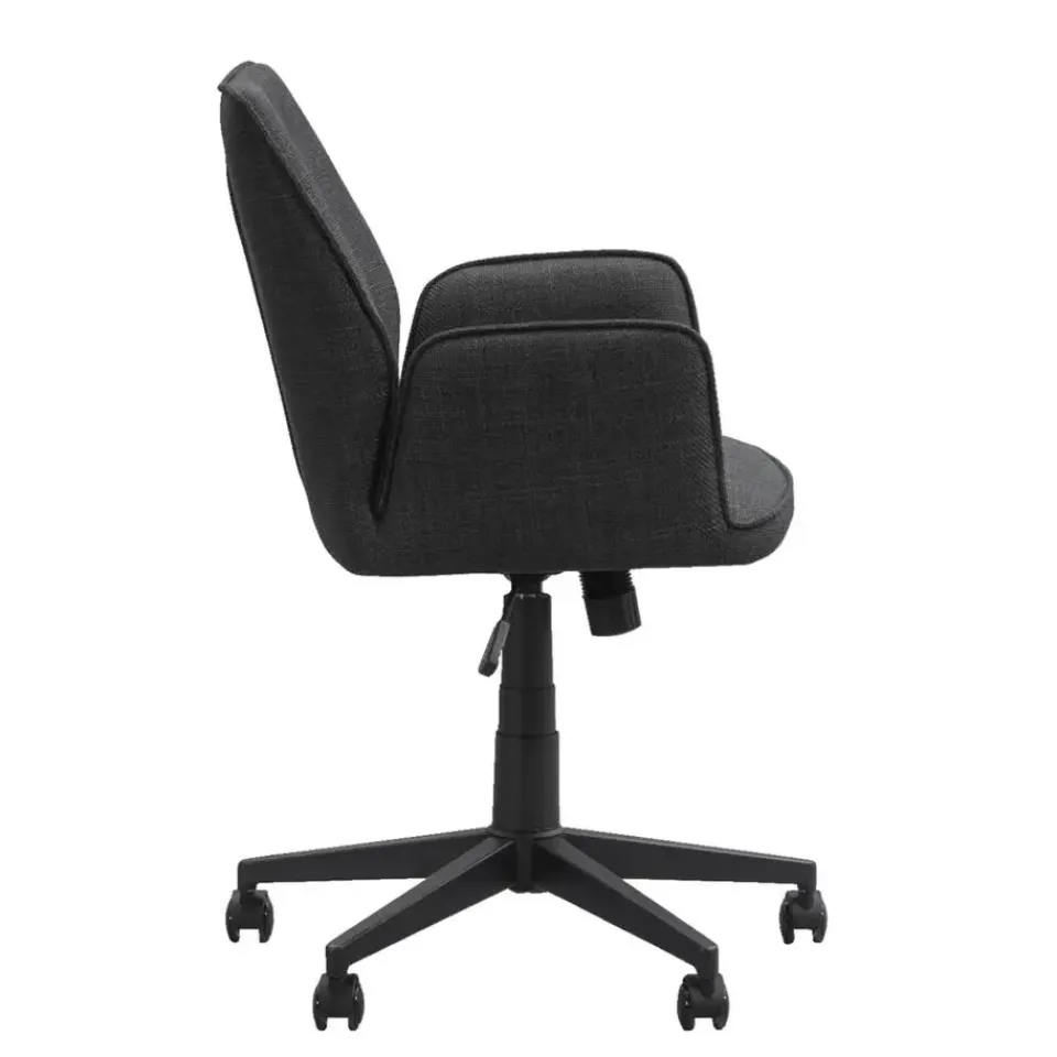 De bureaustoel Raffy in de kleur antraciet is de perfecte mix van comfortabel en stijlvol. Deze draaibare stoel is praktisch en in hoogte verstelbaar, waardoor hij ideaal is voor elke werkplek. Bovendien staat hij leuk in je interieur, met een moderne uitstraling die elke ruimte direct opfleurt. Raffy schuif je gemakkelijk bij als extra zitplek aan je eettafel en zal niet misstaan!