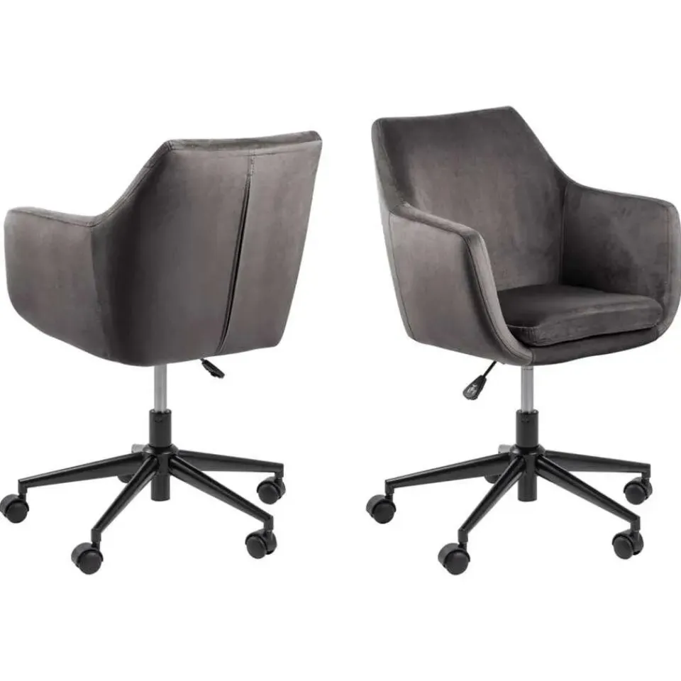 Bureaustoel Uppsala is bekleed met grijs fluweel en zit zeer comfortabel. De stoel is verstelbaar in hoogte en heeft wieltjes. Deze stoel zit niet alleen lekker. hij ziet er ook zeer stijlvol uit. Uppsala is leverbaar in allerlei aantrekkelijke varianten qua type stoffering. kleur en onderstel.