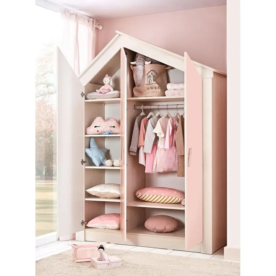 Dankzij het speelse ontwerp in wit met lichtroze en het huisjesmotief vormt deze kast een opvallend middelpunt in de meisjeskamer en sluit perfect aan bij de rest van de Cento Pink meubellijn.