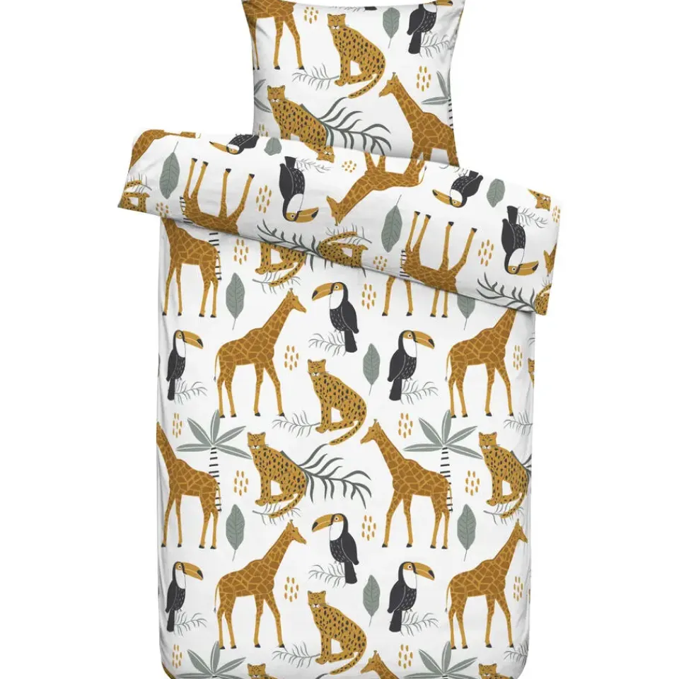 Geef de slaapkamer van je kleine een vrolijke uitstraling met dekbedovertrek Loet. De oranje kleur en de leuke dierenopdruk met giraffen zorgen voor een speelse uitstraling.