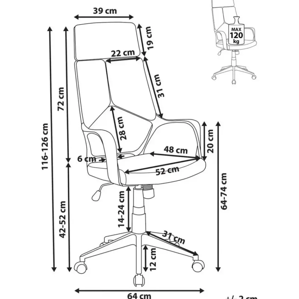 Hoogte armleuningen: 64-74 cm