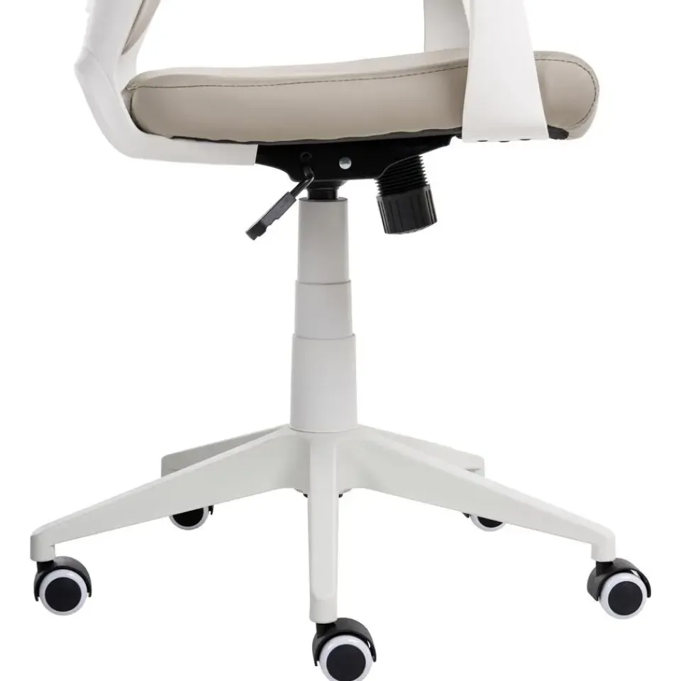 Belangrijkste eigenschappen: 360° draaibaar, Soepel rollende nylon wieltjes, Pneumatisch verstelbare zithoogte, De veiligheidsremfunctie vergrendelt wielen voor veiligheid, ontgrendelt voor mobiliteit, Hoge rugleuning en stevige zitting, Trendy stijl