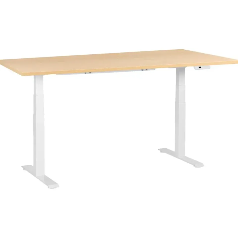 Belangrijkste eigenschappen: Elektrisch in hoogte verstelbaar, Tafelmodel programmeerbaar in 3 verschillende hoogtes, Zachte hoogteverstelling en soepele motoriek dankzij de dubbele motor, Dik tafelblad met hoogwaardige melamine-coating, Hoog draagvermogen, Brede poten voor optimale stabiliteit, USB Oplaadpunt, Anti-botsingssensor voorkomt stoten tegen objecten