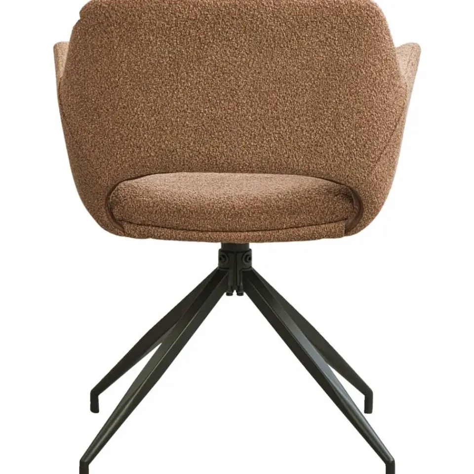 Eetkamerstoel Belle is een elegante stoel met een klassiek design. Met zijn oudroze bekleding en zwarte metalen poten past deze stoel in ieder interieur. Door zijn open rug heeft de stoel een open en frisse, eigentijdse uitstraling. De armleuningen en rugleuningen zorgen voor extra comfort en door het draaibare onderstel van 180 graden, met terugdraaifunctie, kun je makkelijk aanschuiven en uren blijven tafelen. Voeg een vleugje stijl toe aan jouw eetkamer!
