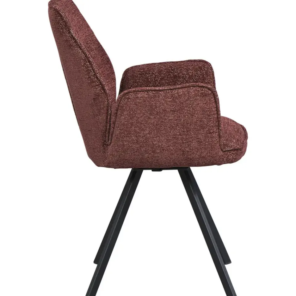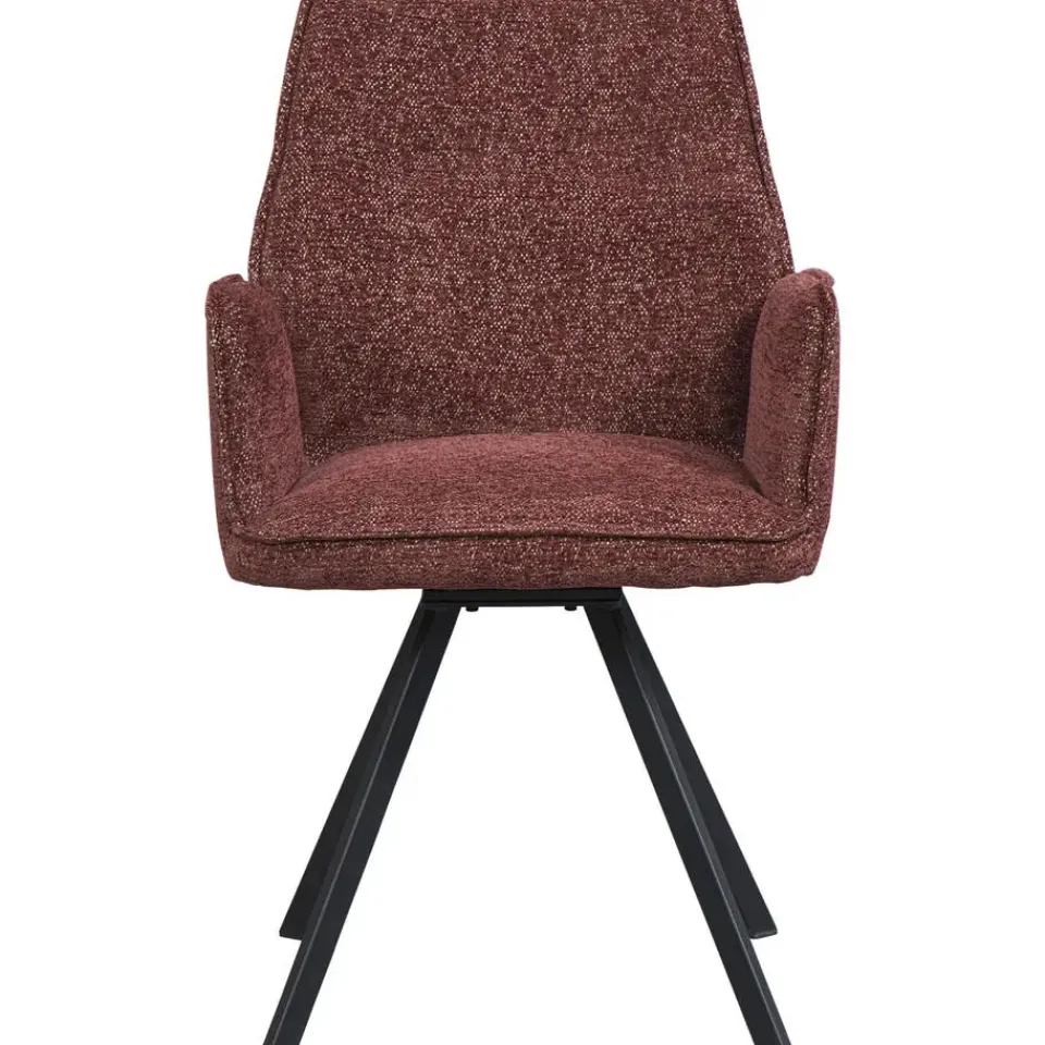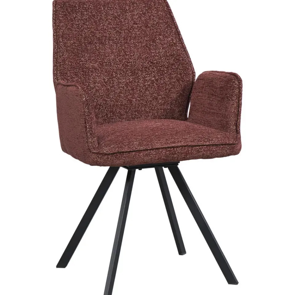 Eetkamerstoel Raffy is een trendy en stijlvolle eetkamerstoel met armleuning. De stoel heeft een kuipzitting en een stoer onderstel. De stoel is 180 graden draaibaar én heeft een automatische terugdraaifunctie. De kuip is bekleed met stof Raven in de kleur wijnrood. Het zwarte onderstel maakt de stoel helemaal af. Raffy kenmerkt zich door zijn uitstekende zitcomfort. Maak jouw eigentijdse interieur helemaal af! Eetkamerstoel Raffy is beschikbaar in diverse kleuren en stoffen. Mix and match en stel zo je ideale eethoek samen!
