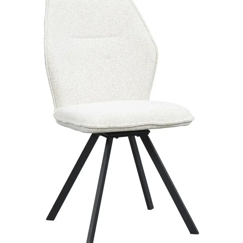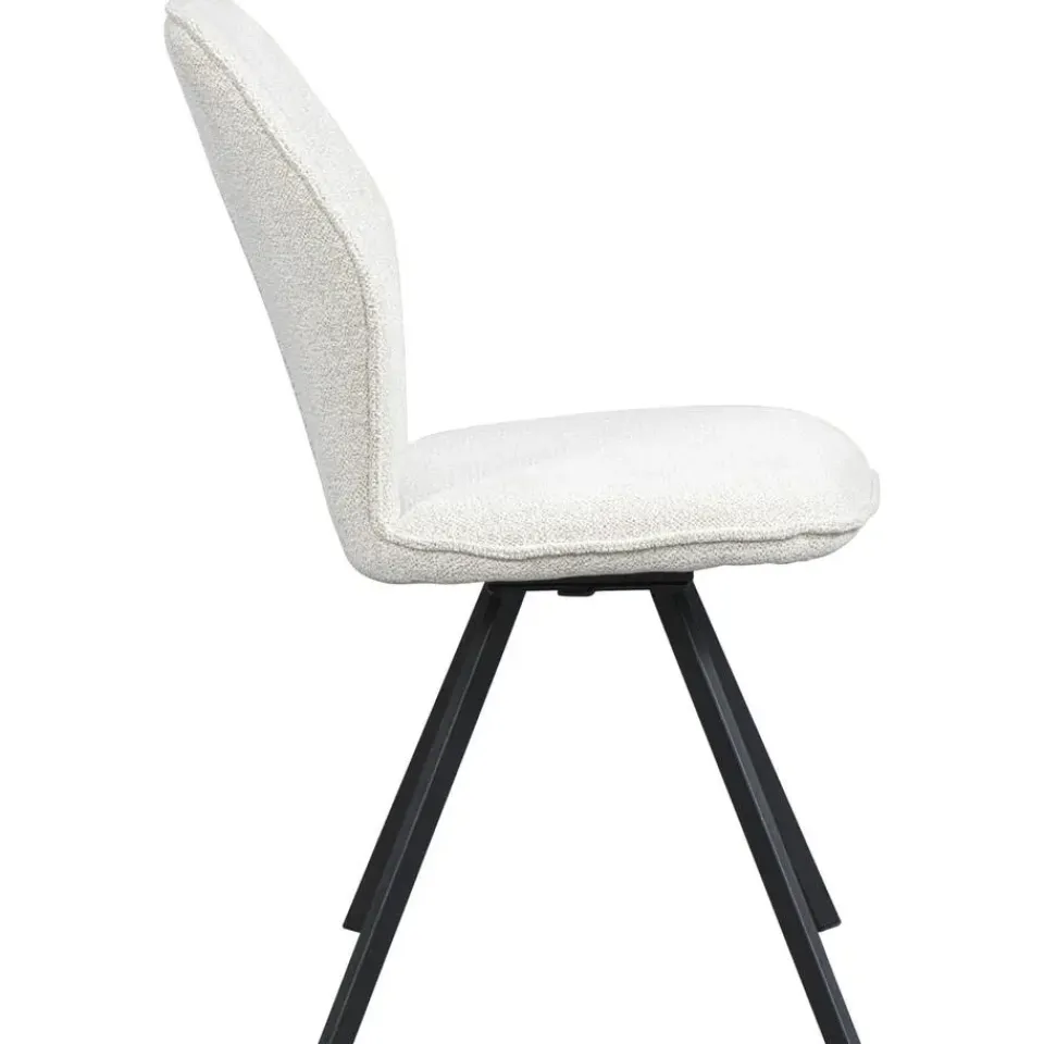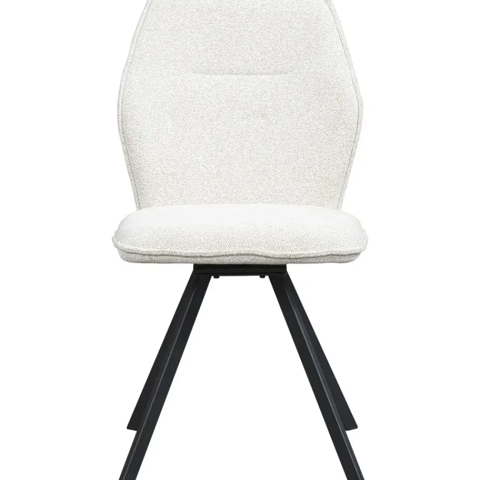Eetkamerstoel Raffy is een trendy en stijlvolle eetkamerstoel. De stoel heeft een kuipzitting en een stoer onderstel. De stoel is 180 graden draaibaar én heeft een automatische terugdraaifunctie. De kuip is bekleed met stof Raven in de kleur crème. Het zwarte onderstel maakt de stoel helemaal af. Raffy kenmerkt zich door zijn uitstekende zitcomfort. Maak jouw eigentijdse interieur helemaal af! Eetkamerstoel Raffy is beschikbaar in diverse kleuren en stoffen. Mix and match en stel zo je ideale eethoek samen!