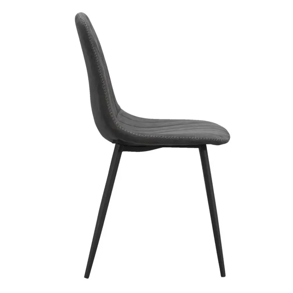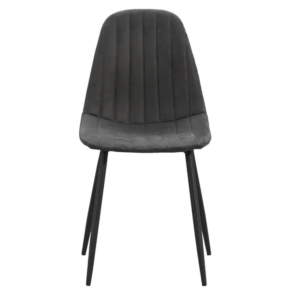 Eetkamerstoel Vince is een trendy stoel voor in jouw interieur. De rugleuning en de zitting zijn bekleed met een grijze/antraciet preston stof. Dit stoeltje staat op vier slanke poten van zwart metaal. De stoel zit comfortabel en heeft een trendy look. Combineer deze Vince stoelen met één van onze eetkamertafels en stel zo je eigen eethoek samen.