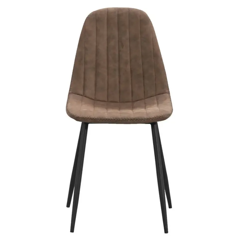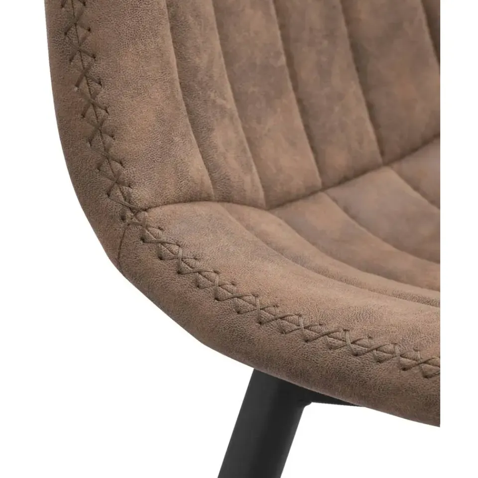Eetkamerstoel Vince is een trendy stoel voor in jouw interieur. De rugleuning en de zitting zijn bekleed met een cognac preston stof. Dit stoeltje staat op vier slanke poten van zwart metaal. De stoel zit comfortabel en heeft een trendy look. Combineer deze cognac stoelen met één van onze eetkamertafels en stel zo je eigen eethoek samen.