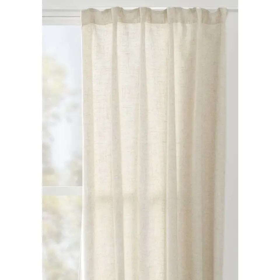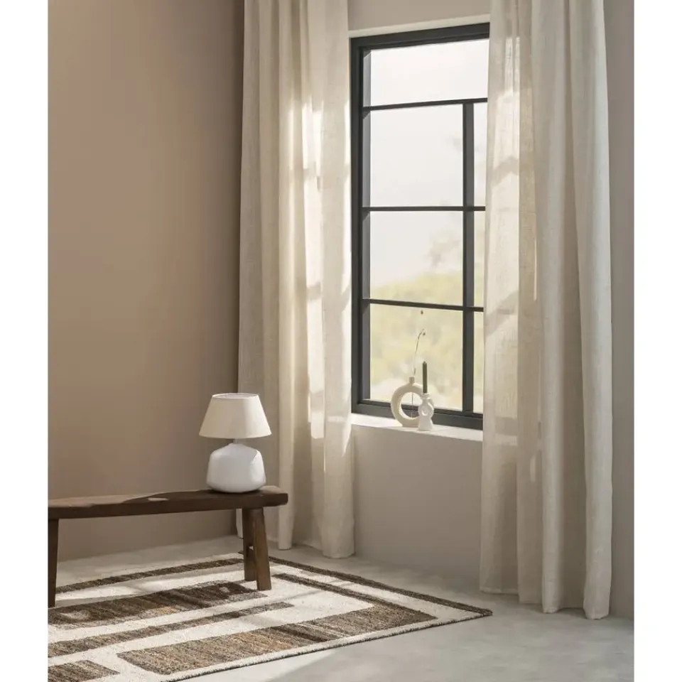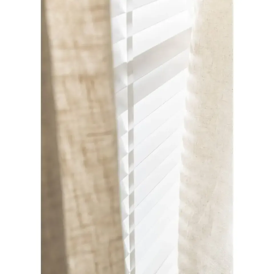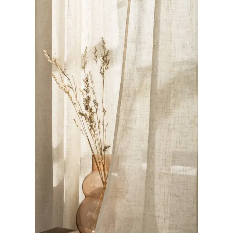 Inbetween kant en klaar gordijn Dante zand heeft een natuurlijke rustige uitstraling en is gemaakt van 15% linnen en 85% gerecycled polyester. De gordijnstof is een linnen blend en heeft daardoor een zachte look die je ruimte een luxe sfeer geeft. Deze gordijnstof heeft een GRS keurmerk, dit is een kwaliteitscertificaat voor recyclede materialen.