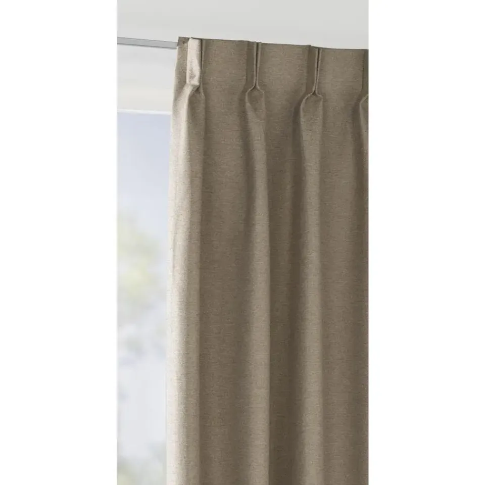 Gordijnstof Nox verduisterend in lichtbruin combineert een warme uitstraling met optimale functionaliteit. Het fijn geweven materiaal met melee patroon geeft de stof een subtiele textuur en een stijlvolle look. Dankzij de 100% verduisterende kwaliteit wordt licht volledig tegengehouden, waardoor je een donkere en rustige sfeer in de kamer creëert. De loodveter finish zorgt voor een nette en verzorgde val van het gordijn. Deze stof is praktisch in onderhoud: wasbaar op 30 graden Celsius, licht te strijken op de laagste stand en niet geschikt voor de droger. Zo blijft de stof mooi in vorm en behoudt het zijn hoogwaardige uitstraling. Als je op zoek bent naar een gordijn dat volledig verduistert, een warme en elegante uitstraling heeft en eenvoudig te onderhouden is, dan is gordijnstof Nox verduisterend een goede keuze.