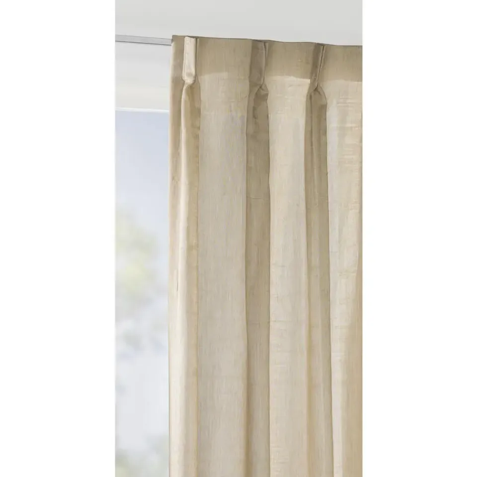 Deze inbetween in zand is semi transparant, waardoor er zacht daglicht binnenkomt terwijl je privacy behoudt. De hoogglans structuur geeft de stof een elegante uitstraling en voegt direct sfeer toe aan de ruimte. Dankzij de loodveter aan de onderzijde valt het gordijn gelijkmatig en strak, wat zorgt voor een verzorgde look bij het raam. De stof kan gewassen worden op 30 graden, behoudt zijn vorm doordat het niet in de droger mag en kan op de lichtste stand gestreken worden voor een nette afwerking. Als je op zoek bent naar zachte lichtinval, een stijlvolle glans en een gordijn dat soepel valt, dan is inbetween Luzia een goede keuze.