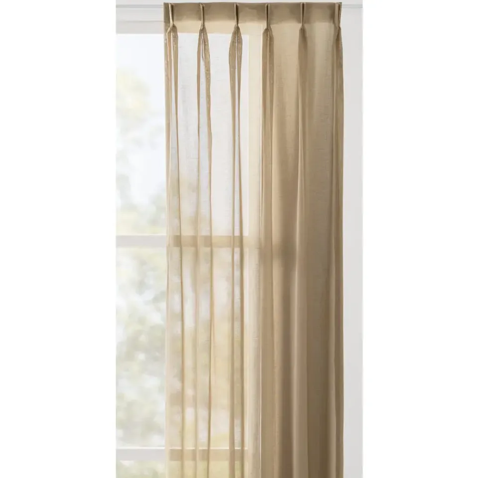 - Een dun geweven gordijnstof met een natuurlijke valling