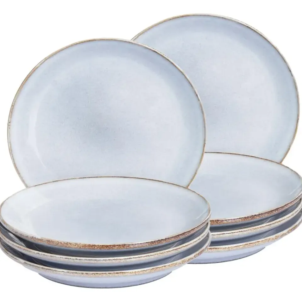 Handgemaakte dessertborden set voor 8 personen. Verwelkom je gasten en geniet van elegante momenten met deze set van 8 bijzetborden. De neutrale lichte tint, geaccentueerd met subtiele bruine details, past prachtig bij donkerhouten tafels of elk interieur. Deze set is gemaakt van duurzaam en gemakkelijk te onderhouden steengoed en is zowel magnetron- als vaatwasmachinebestendig voor ultiem gemak. Elk stuk heeft een unieke afwerking, waardoor het echt uniek is. Deze set combineert stijl met functionaliteit en voegt een vleugje charme toe aan elk koffie- of theemoment.