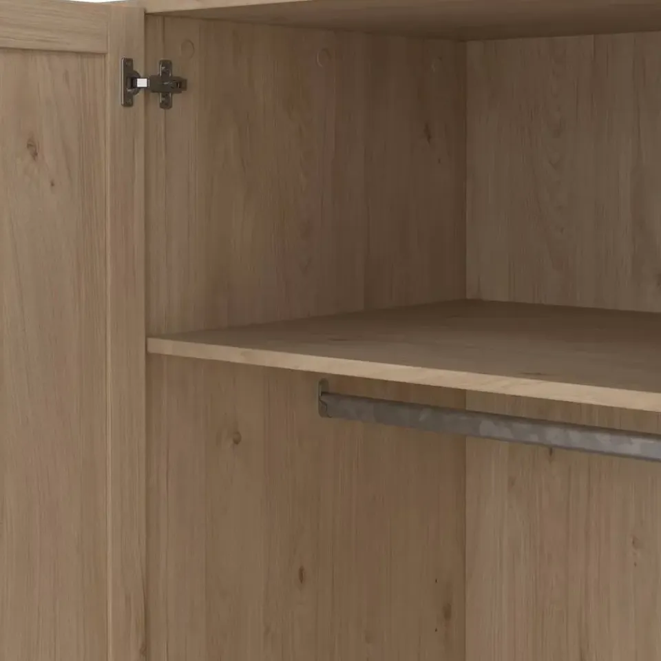 Kledingkast Lynn is een mooie en handige kledingkast in een eikenkleur. De strakke en moderne lijsten op de deuren zorgen ervoor dat de kast een mooie toevoeging is aan de slaapkamer, logeerkamer of kledingkamer.