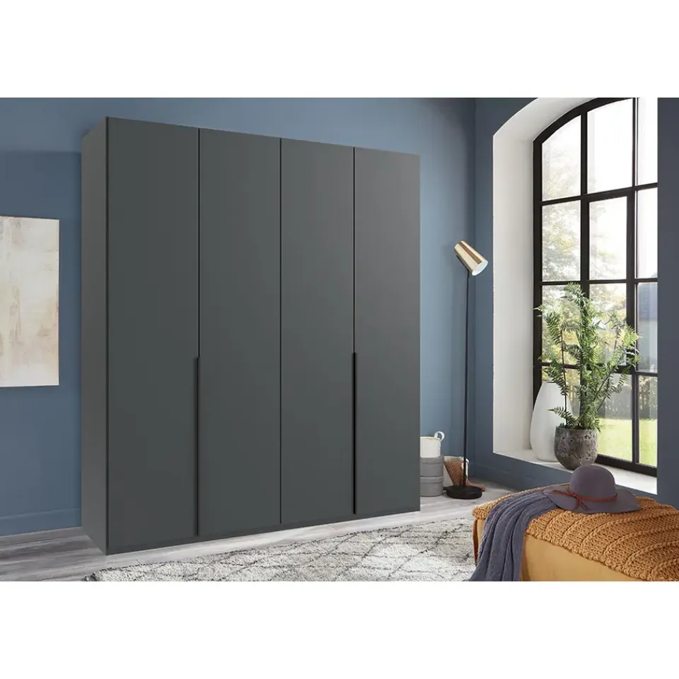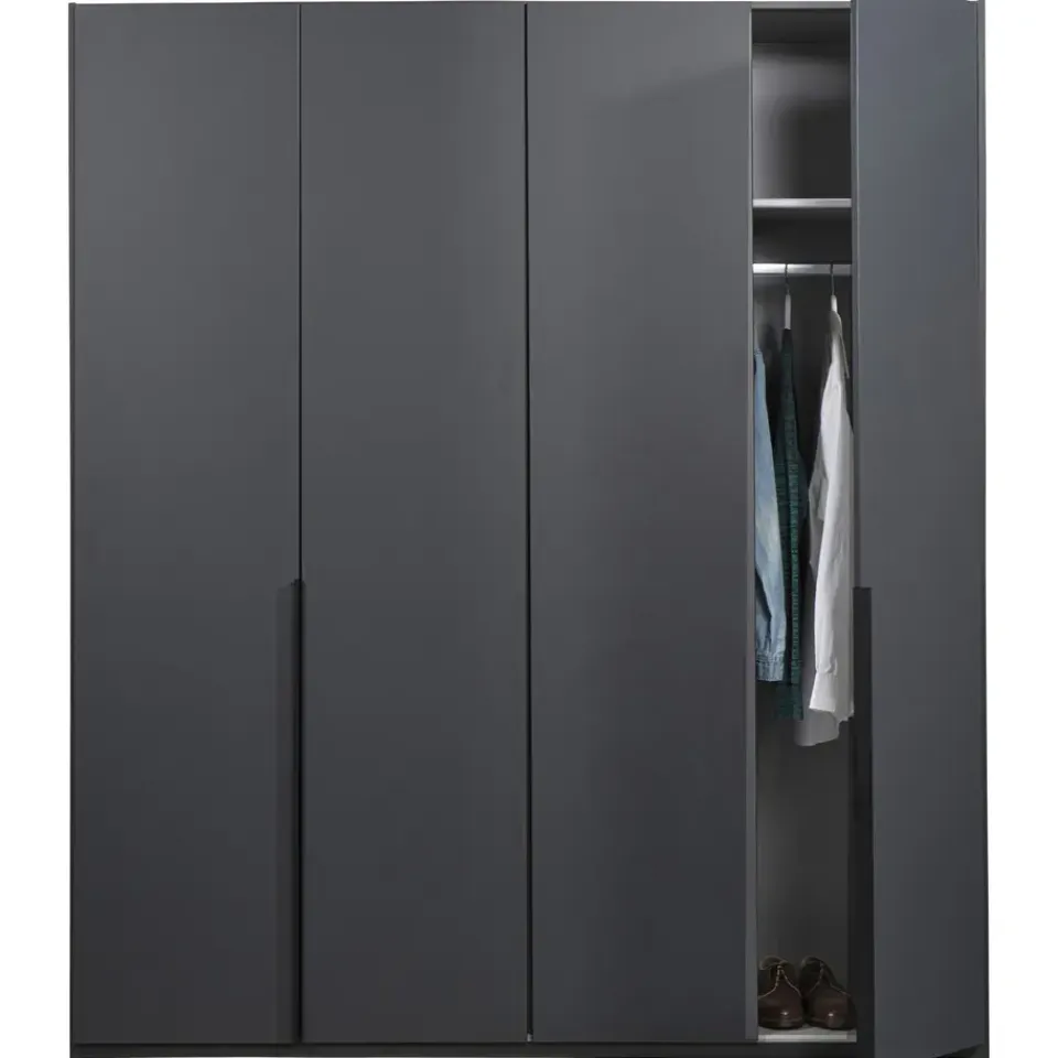 Leen Bakker Kledingkast Milaan 4-deurs- grafiet - 208x180x58 cm Online