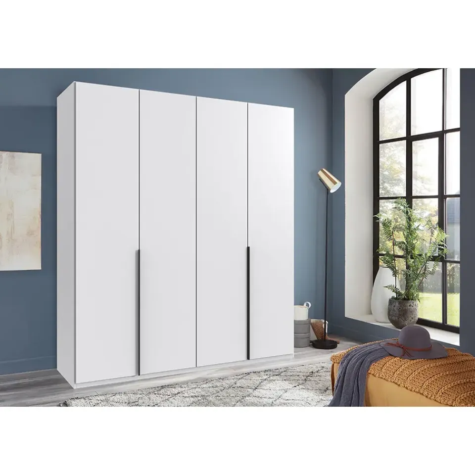 Een strakke, elegante kast waar je al je kleding in op kan bergen. Dat is kledingkast Milaan! Deze 4-deurs kast heeft een minimalistische uitstraling, past in elk interieur, heeft een fijne indeling en met een afmeting van 208x180x58 cm (hxbxd) ook nog eens veel opbergruimte.