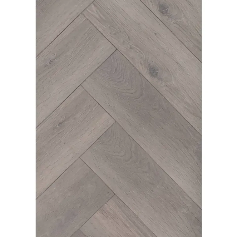 Laminaat Herringbone is een landelijk romantisch laminaat in de kleur donker eiken. Laminaat heeft veel voordelen. Het is heel gemakkelijk te leggen, vergt weinig onderhoud en laminaat is vele malen voordeliger dan een houten vloer. Deze laminaatvloer is te leggen in een visgraat dessin waardoor je veel charme en karakter toevoegt in je ruimte.