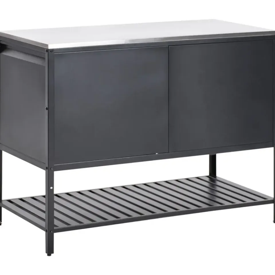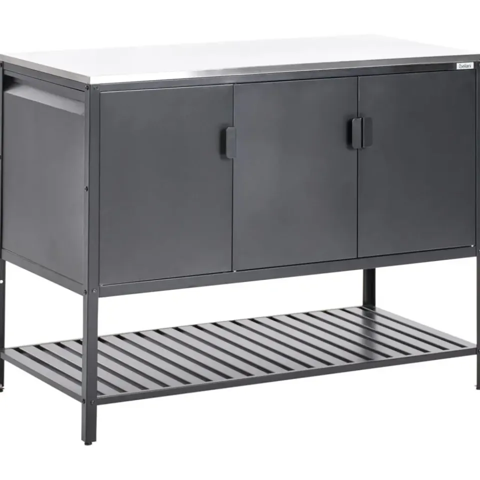 Belangrijkste eigenschappen: Verstelbare poten, Roestvrijstalen aanrecht voor gemakkelijk reinigen en voedsel veiligheid, Modern terras- en tuinmeubilair, Speciaal gemaakt voor gebruik buitenshuis, Roestvrijstalen frame, UV-bestendigheidsklasse, Voldoende opslagruimte