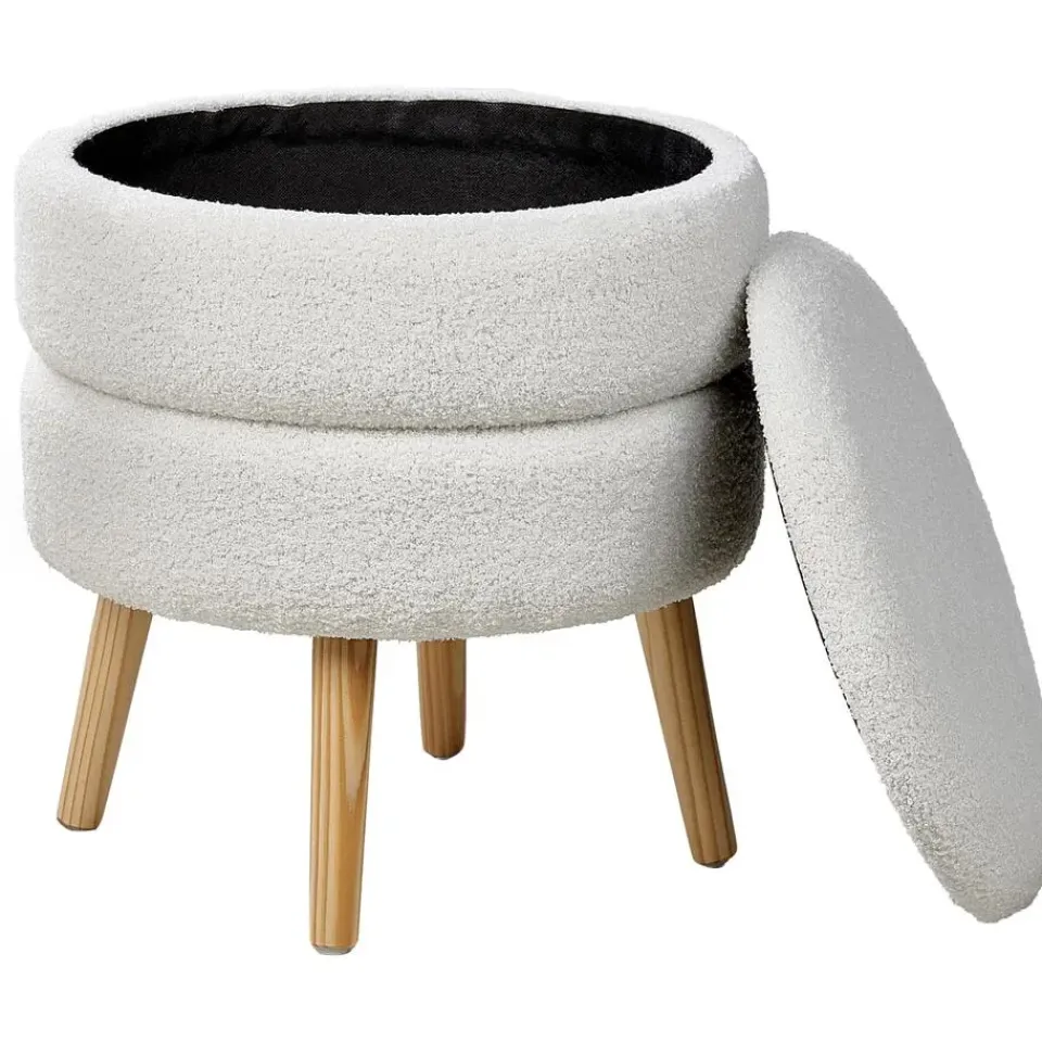 Leen Bakker OKATON – Hocker met opbergruimte – Wit – Bouclé