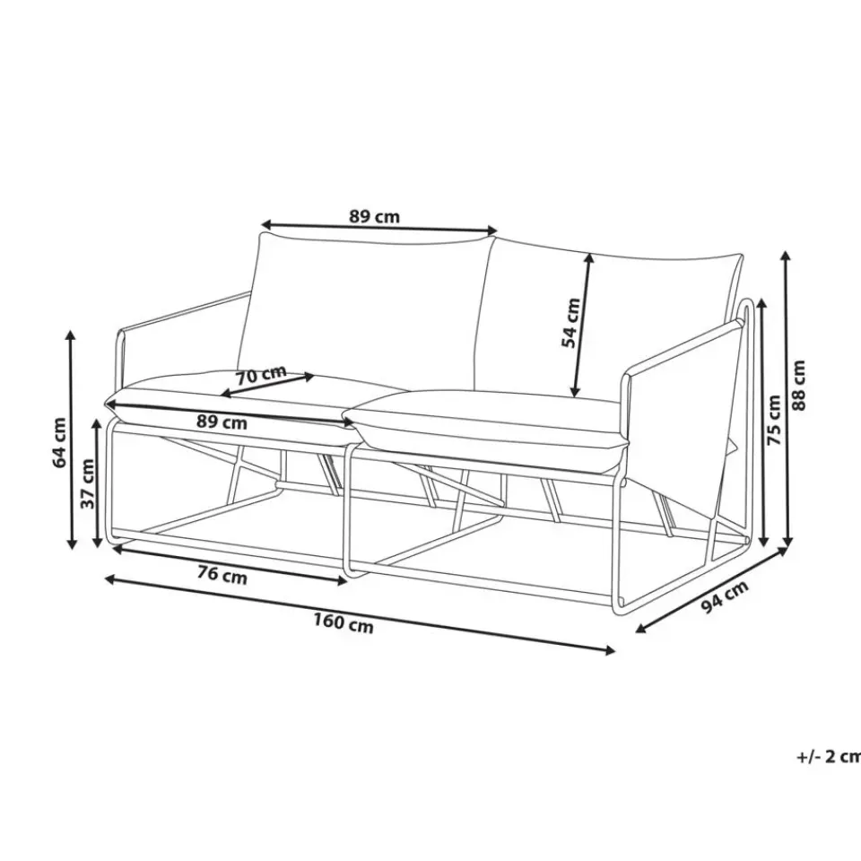 Aanbod omvat: 1 x Tweezitsbank, 2 x Zitkussen, 2 x Rugkussen