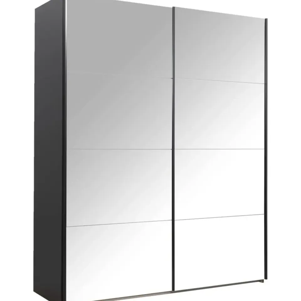 Zoek je een ruime en stijlvolle kledingkast voor je slaapkamer? De Bergamo kledingkast in antraciet is de perfecte keuze! Met zijn moderne uitstraling en praktische indeling biedt deze kast voldoende ruimte voor al je kleding. De kast heeft 2 schuifdeuren met spiegel, wat zorgt voor een strakke en ruimtebesparende uitstraling. Door de afmetingen van 221×178,5×66,6 cm (hxbxd) past deze kast zowel in grote als kleinere slaapkamers.