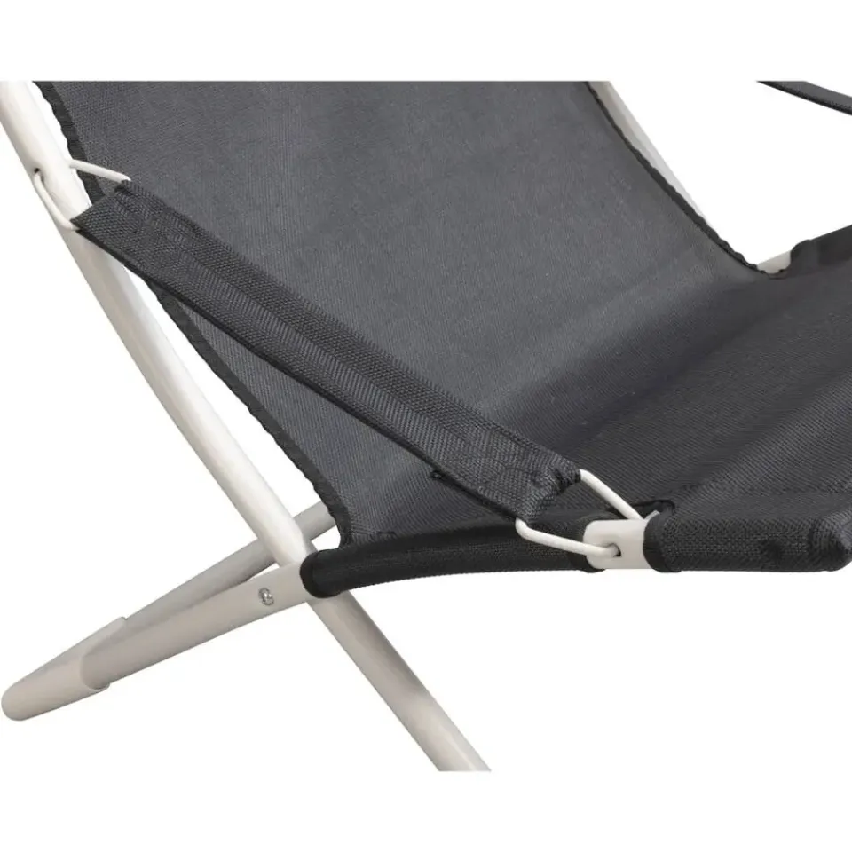 Strandstoel Rimini is gemaakt van beigekleurig metaal en een antracietkleurige zitting van textileen. Deze strandstoel is gemakkelijk in gebruik en ideaal voor een dagje strand.