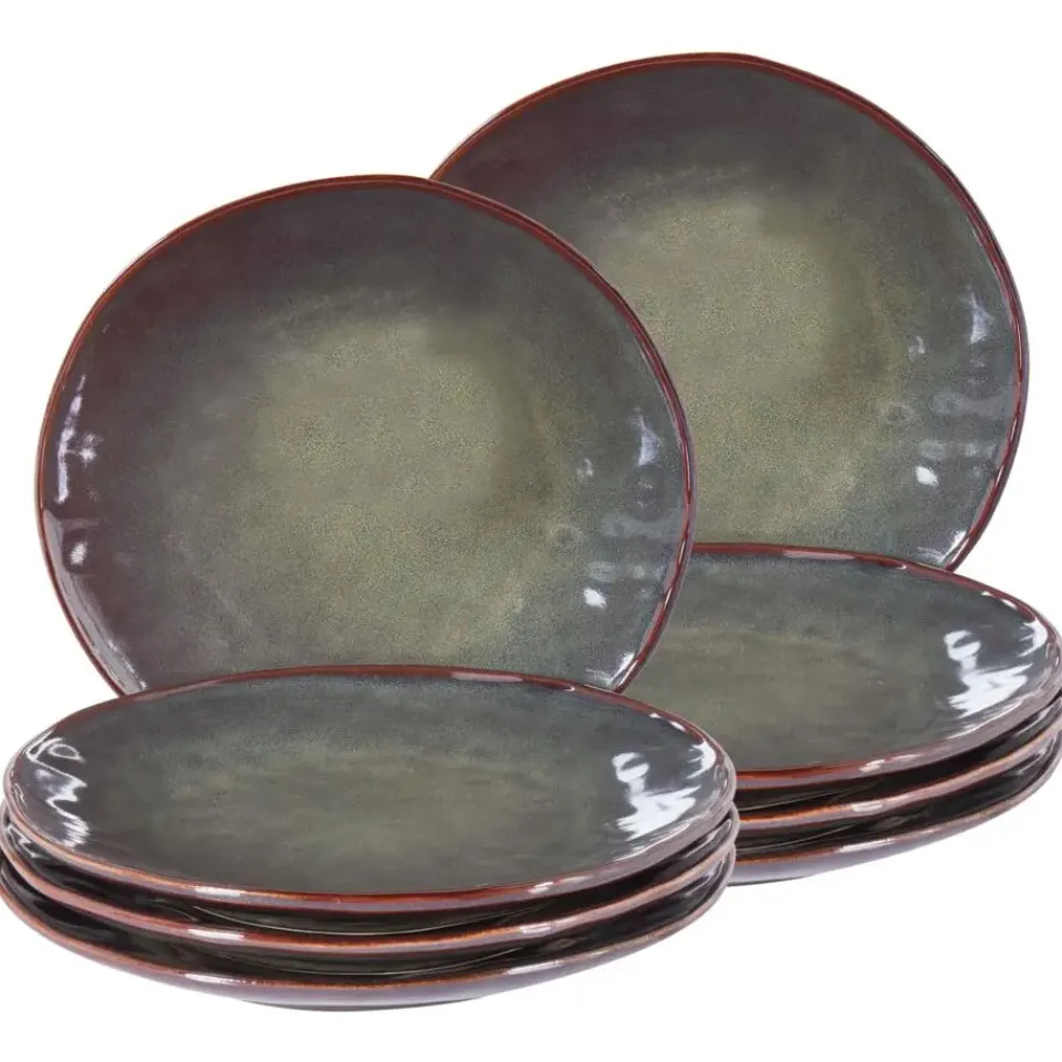 Leen Bakker THYME - Dinerborden set van 8 - Donkergroen - Steengoed New