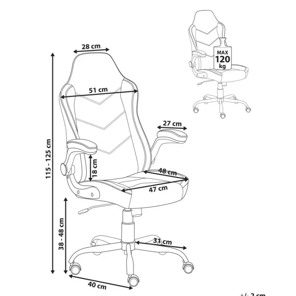 Hoogte zitting: 38-48 cm