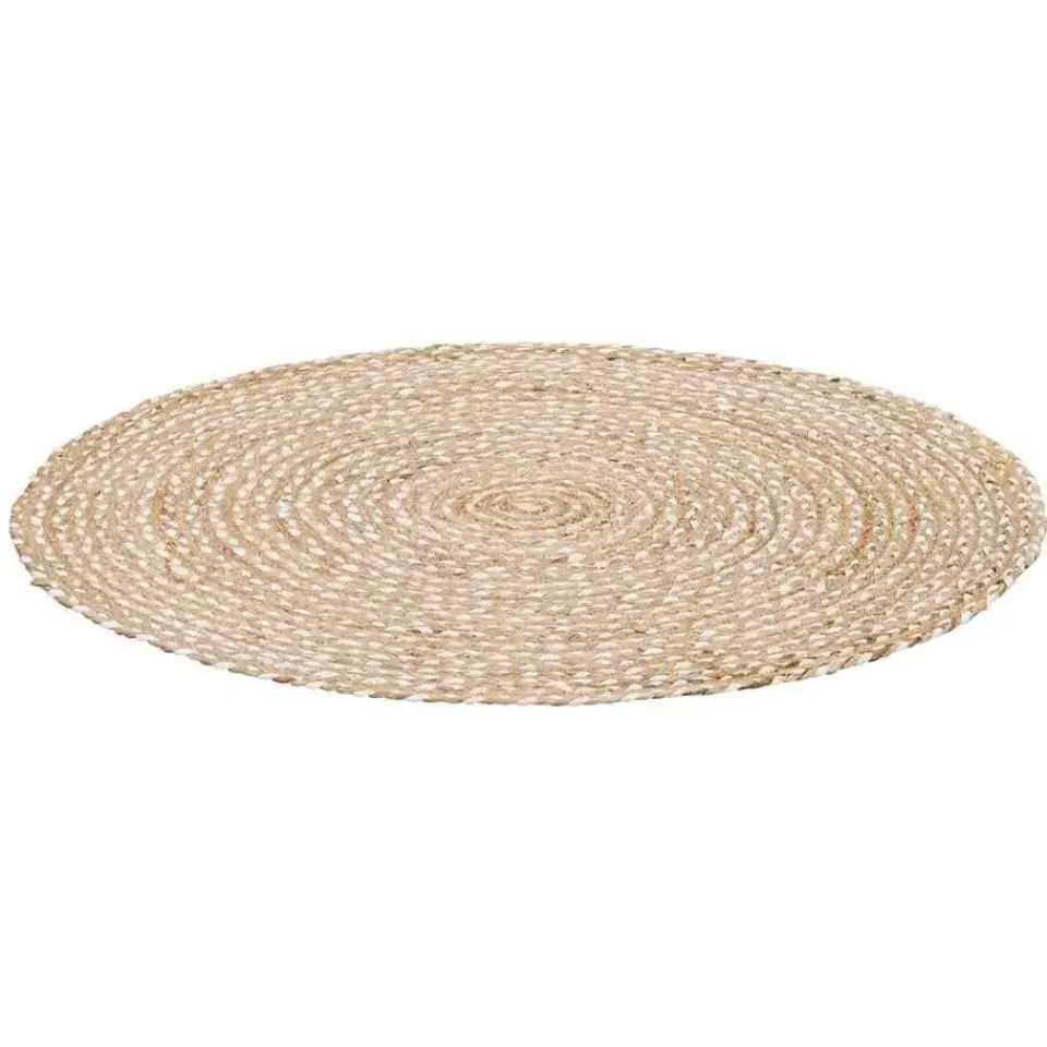 Het vloerkleed heeft een diameter van 100 cm en is gemaakt van jute.