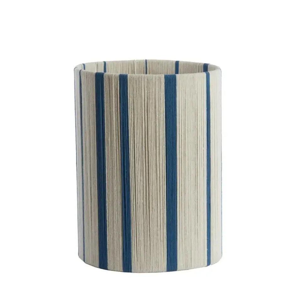 Unieke cilinder lampenkap in crème met blauwe accenten