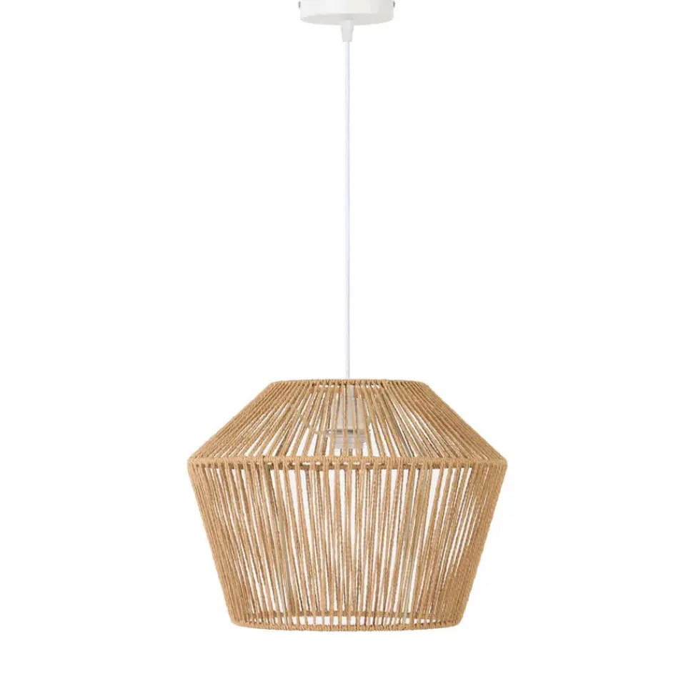De Caspian hanglamp is een echte blikvanger met een Ø40cm lampenkap van touw en witte draad. De lamp geeft een warm en sfeervol licht, waardoor hij perfect is voor je woonkamer of slaapkamer. De natuurlijke materialen en de zachte verlichting creëren een gezellige uitstraling, waardoor je je meteen thuis voelt.