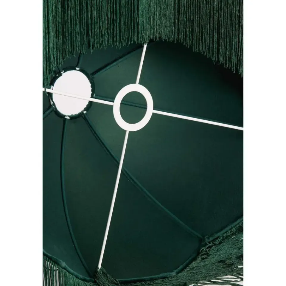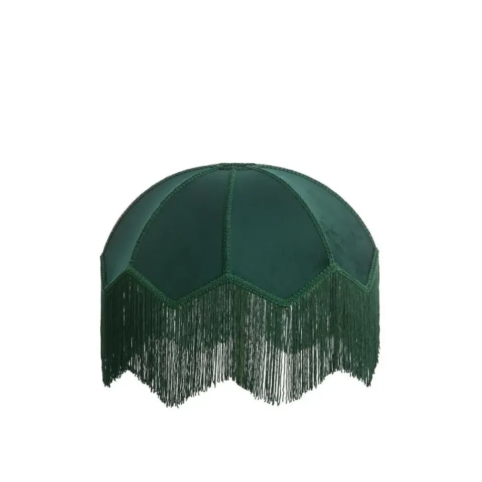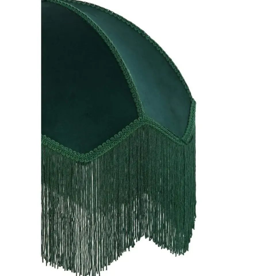 - Donkergroene fluwelen stof en franjes aan de onderkant