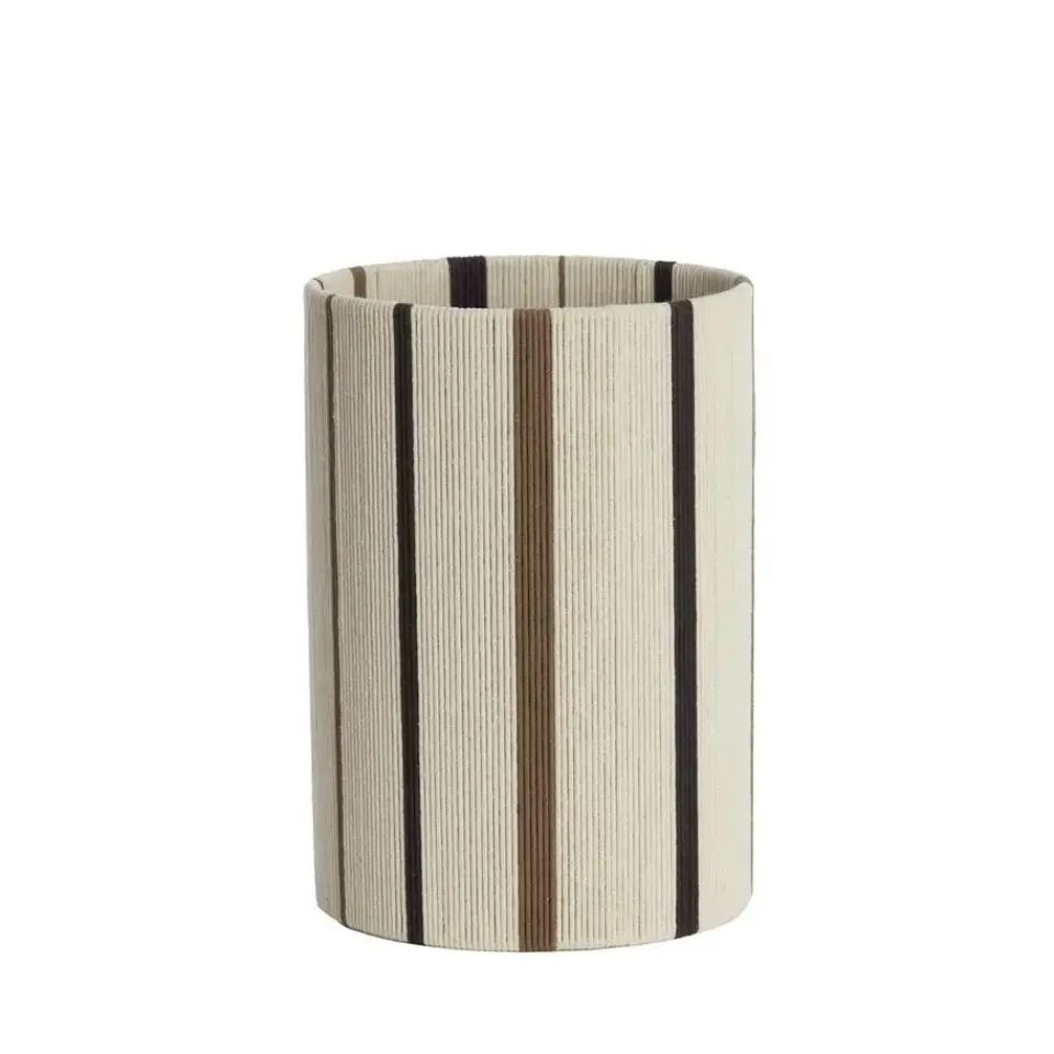 Deze cilinder lampenkap Medan onderscheidt zich door zijn opvallende ontwerp. De lampenkap is gemaakt van dunne jute draden die gespannen zijn in het frame. Dit geeft de lampenkap een luchtige, textuurrijke uitstraling die een prachtig spel van licht creëert in elke ruimte. Perfecte voor wie op zoek is naar een lampenkap die net even anders is dan de rest en zowel stijl als originaliteit uitstraalt.