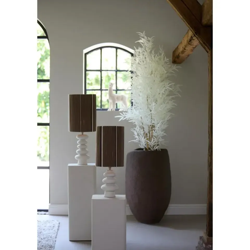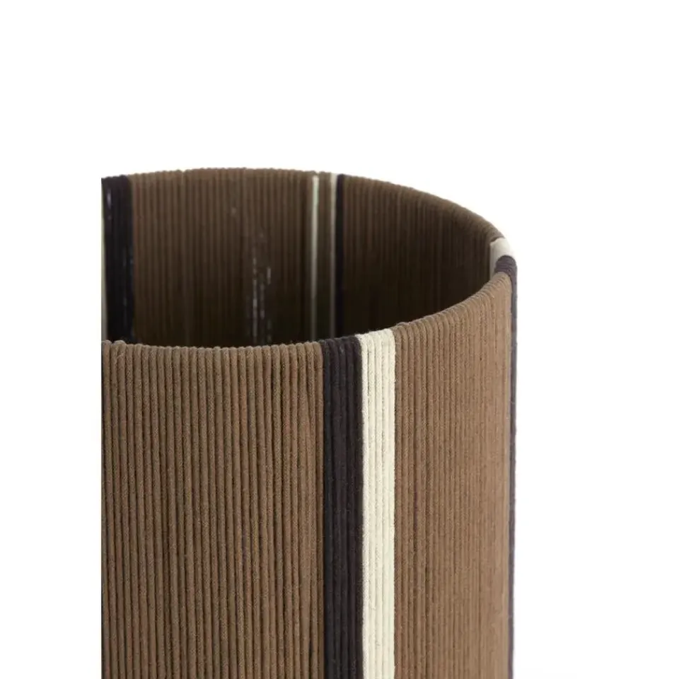 Deze cilinder lampenkap Medan onderscheidt zich door zijn opvallende ontwerp. De lampenkap is gemaakt van dunne jute draden die gespannen zijn in het frame. Dit geeft de lampenkap een luchtige, textuurrijke uitstraling die een prachtig spel van licht creëert in elke ruimte. Perfecte voor wie op zoek is naar een lampenkap die net even anders is dan de rest en zowel stijl als originaliteit uitstraalt.