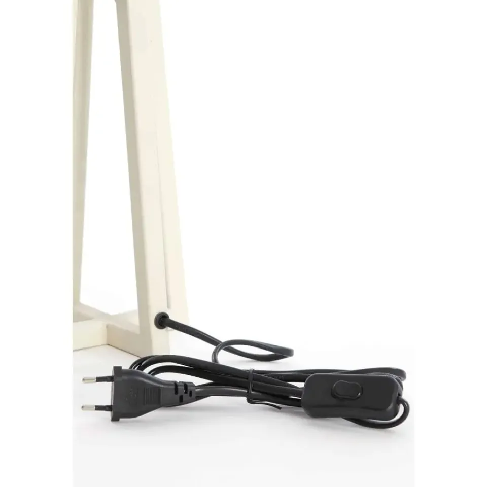 De Miley vloerlamp in crème heeft een unieke gekruiste metalen voet. Met afmetingen van 11,5×11,5×31 cm geeft hij een unieke touch aan je woonkamer. De vloerlamp wordt geleverd zonder lampenkap, zodat je de lamp kunt personaliseren met elke kap naar keuze.