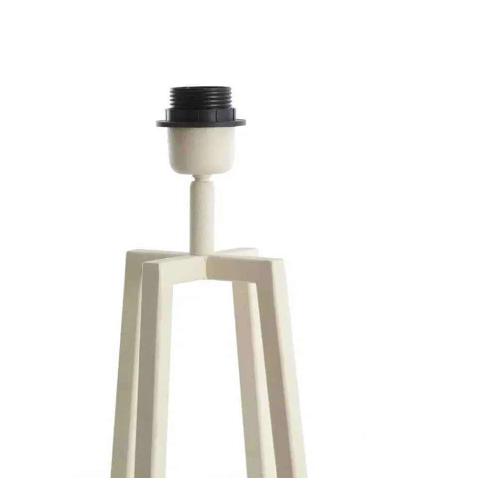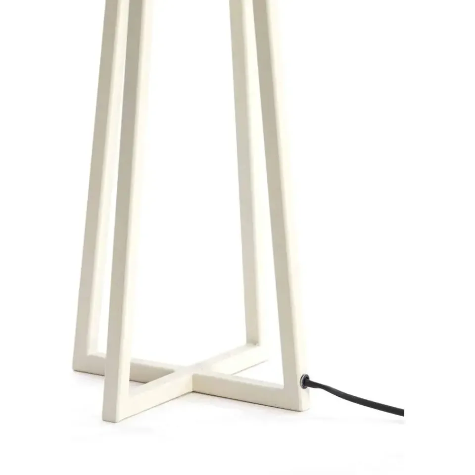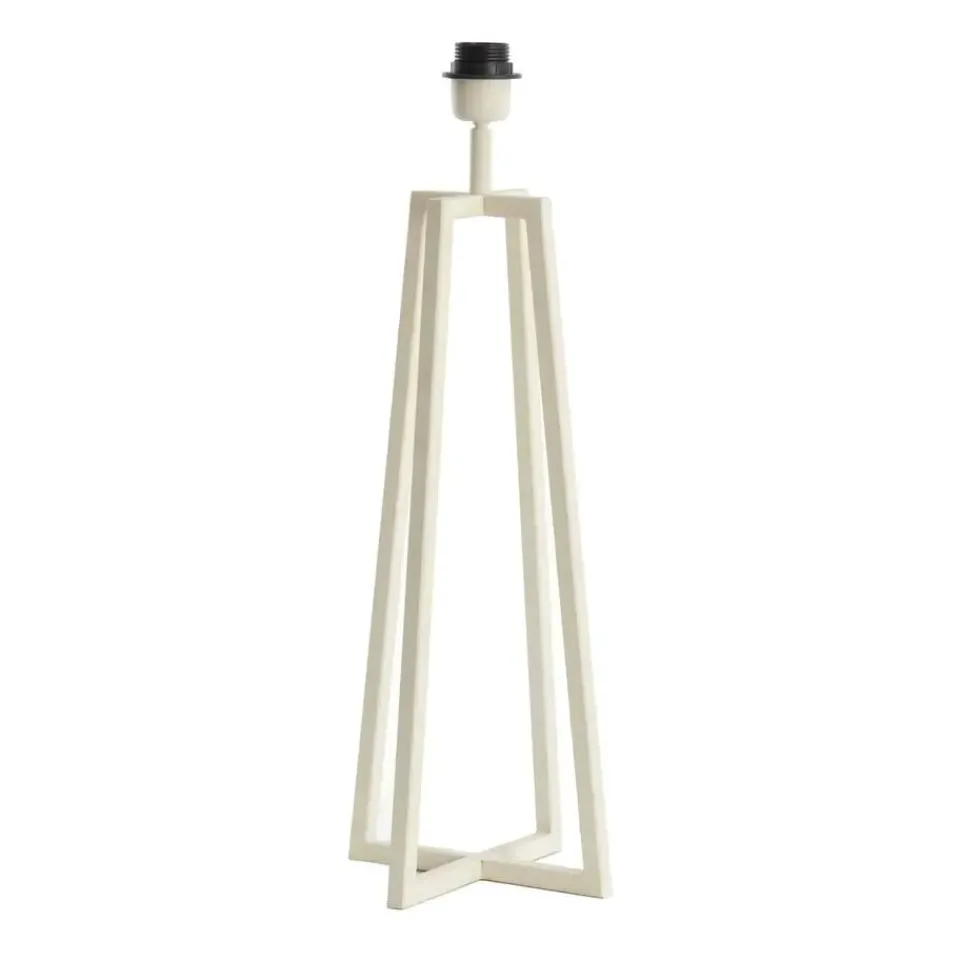 De Miley vloerlamp in crème heeft een unieke gekruiste metalen voet. Met afmetingen van 21x21x56 cm geeft hij een unieke touch aan je woonkamer. De vloerlamp wordt geleverd zonder lampenkap, zodat je de lamp kunt personaliseren met elke kap naar keuze.