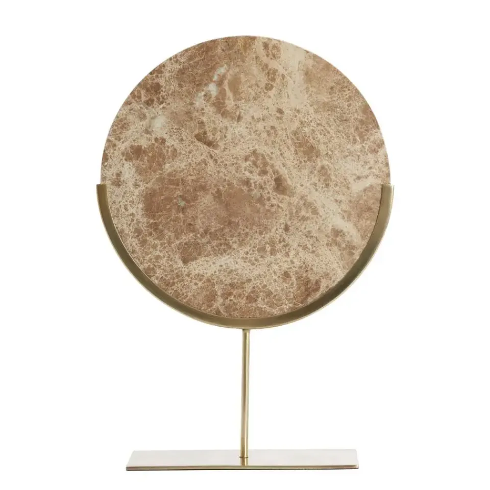 Dit bruine Moreno ornament op voet is een stijlvolle toevoeging aan zowel de woonkamer als de slaapkamer. Dit ronde ornament geeft een ruimte direct een luxe uitstraling. Decoratieve ornamenten zijn perfect om een vleugje elegantie aan je interieur toe te voegen. Dit ornament op standaard is uitgevoerd in bruin marmer met een bronzen voet. Plaats een ornament als decoratie op een bijzettafel in de woonkamer of op een dressoir in de slaapkamer voor een instant wow-effect.